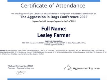 This page confirms my promise to you that I always have and always will continue to study and learn the latest advancements in positive reinforcement dog training to enable me to provide the most up to date, scientifically proven, force free dog training service for you and your dog.